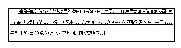 6.采购需求:睡眠呼吸暂停分析系统项目1项。具体内容详见本竞争性磋商文件。