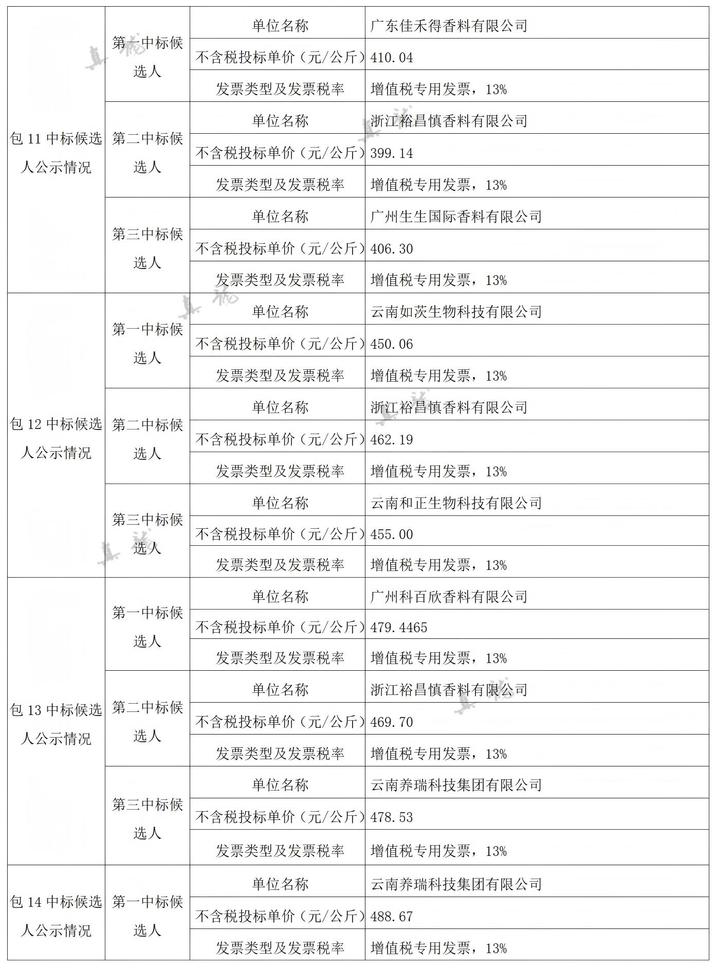 广西中烟工业有限责任公司2026-2028年自主品牌香精香料采购之复合体采购第一批(项目编号:B202501BA2001767947560)中标候选人公示