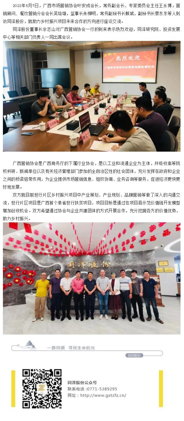 助力乡村振兴,共谋行业发展- 广西市场营销协会到访fun88入口